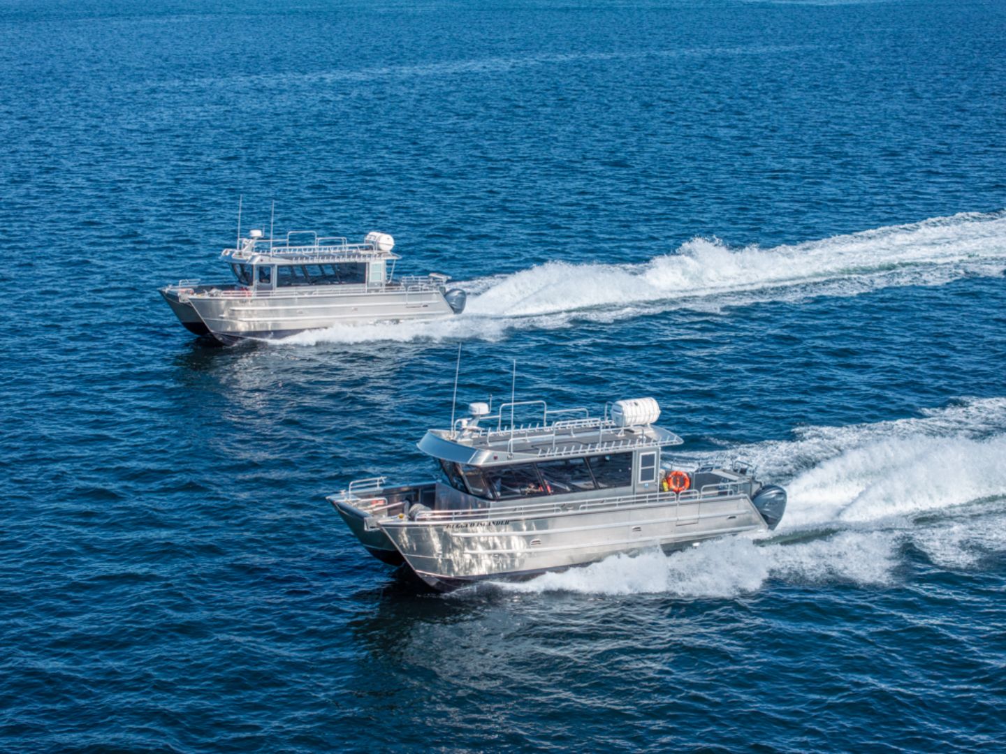 Equipped and perfectly suited for your clients to have the best experience on the water. Custom fishing and deck equipment, walkaround cabins for 360-degree fishability, beaching ramps for remote landings, and heated cabins to catch a break from the elements.